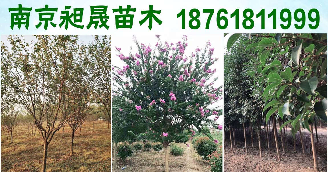 朴树、 大叶女贞、 榉树、 黄山栾树、 雪松、 樱花、 紫薇、 垂柳、 无患子、 七叶树、 香樟、 鸡爪槭、 枫香、 红叶石楠、 桂花、 红玉兰、 白玉兰、 紫荆、 花石榴、 美国紫薇