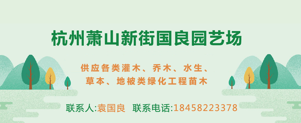 杭州萧山新街国良园艺场位于“人间天堂”,中国花木之乡——杭州萧山,地处钱塘江江南岸,东连杭州萧山国际机场,地理位置优越,交通便捷,浙赣线路,104国道,杭甬,杭金衢高速贯穿全区。 主要经营:金森女贞、栀子花、红花继木、金边黄杨、大叶黄杨、瓜子黄杨、红叶石楠、小丑火棘、海桐、火棘、黄馨、小叶女贞、绣线菊、茶梅、龟甲冬青、六月雪、春鹃、杜鹃、桃叶珊瑚、青珊瑚、爬山虎、十大功劳、金丝桃、红叶小檗、洒金柏、八角金盘、美人蕉、麦冬草、南天竹、大小龙柏、腊梅、无患子、红枫、樱花、杜英、大叶女贞、红白黄玉兰、广玉兰、合欢、乐昌含笑、深山含笑、垂丝海棠、西府海棠、红叶李、四季桂、单桂、八月桂、栾树、紫薇等各种绿化苗木。另供各种水生植物.:美人蕉、溪荪、花叶芦竹、线叶香蒲、常绿水生鸢尾、睡莲、金线水葱、银边石菖蒲、旱伞草、粉绿狐尾藻、荇菜、红湘莲、再力花、获、千屈菜、红莲子草、水鬼蕉、三白草、细叶莎草、水毛花、花叶芦竹、梭鱼草、荷花、花叶菖蒲、黄菖蒲、金线水葱、金叶芦苇等各类灌木、乔木、水生、草本、地被类绿化工程苗木。